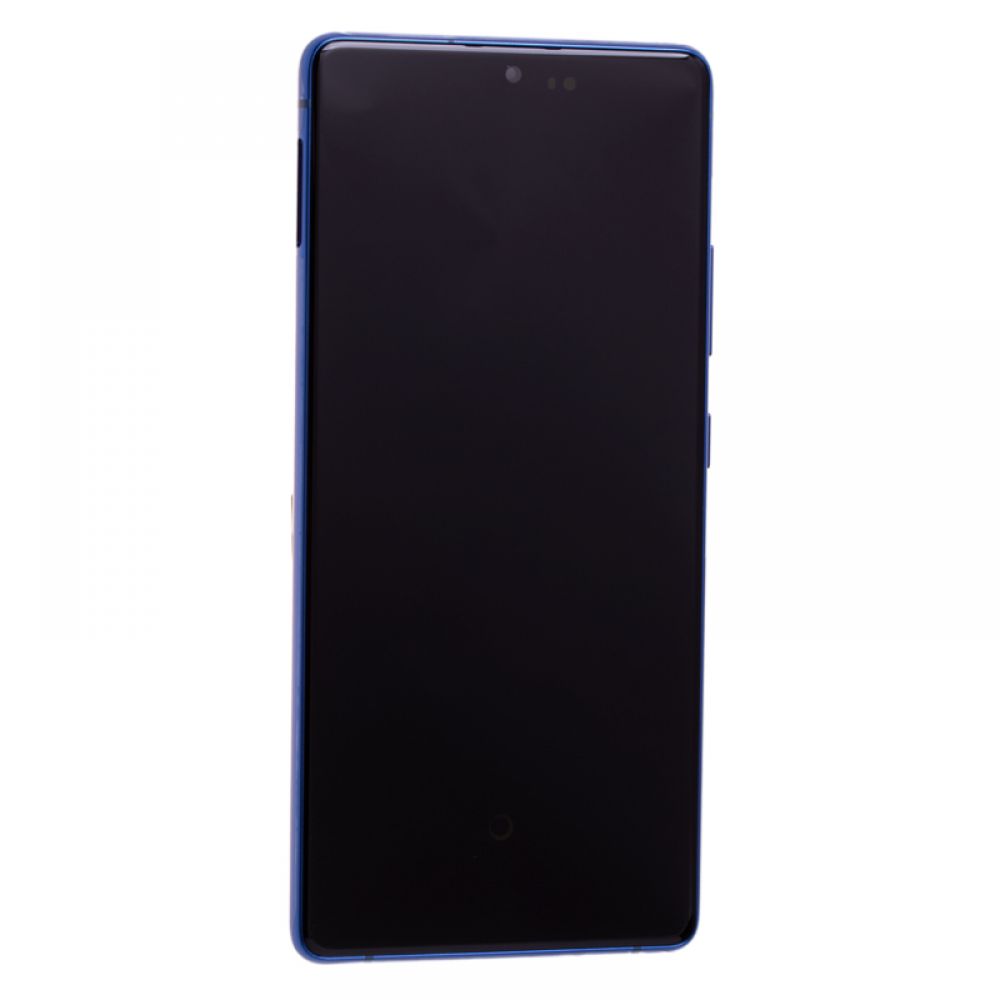 У разі пошкоджень на дисплеї або склі Samsung Galaxy S10 Lite необхідна їхня заміна, яка виконується встановленням нового екрану з Super AMOLED Plus матрицею, сенсором покритим склом Corning Gorilla Glass 3 з олеофобним покриттям та рамкою кольору кришки смартфона. На рамці також розташовані кнопки увімкнення та гучності. Цей модуль підходить для встановлення в Samsung S10 Lite із корпусом синього кольору. Дисплей не має відмінностей від екрану нового смартфона, встановлюється в корпус без проміжків і забезпечує коректну роботу пристрою.